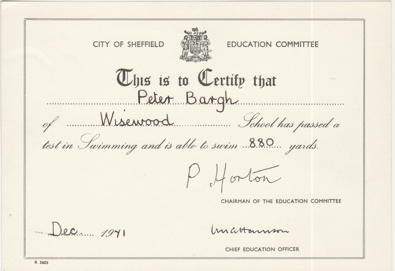 Wisewood junior school used Hillsborough swimming baths for swimming lessons. At the baths, now a Weatherspoons pub called Rawson Spring, we could earn swimming certificates, starting at 25 yards. Public baths at that time were built to the imperial standard before metrication (25 yards = 22.86 metres).