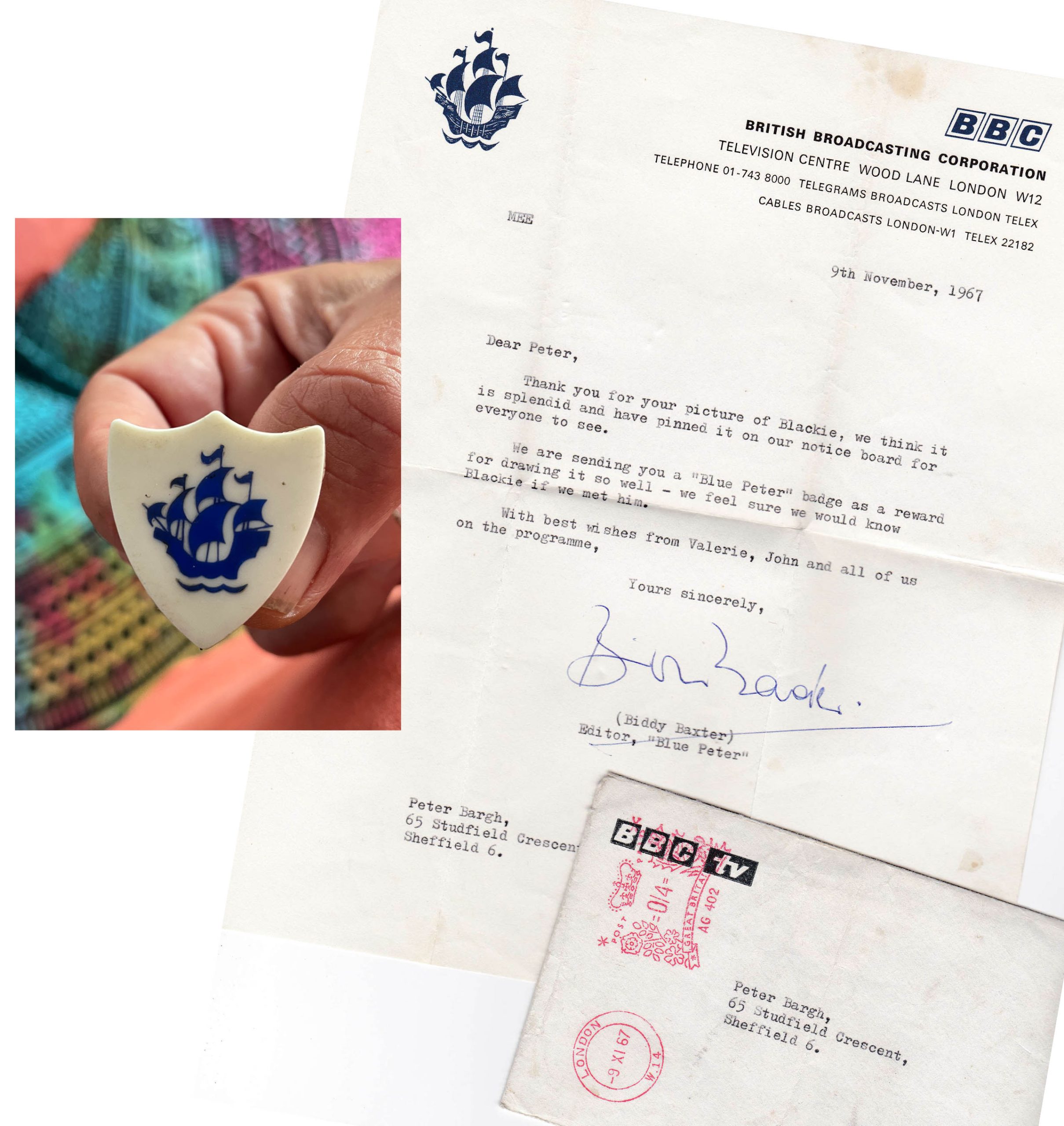 As a child I was always sending off to magazines, trying to win competitions, drawing, being creative. It was a fantastic day when I received a letter from the TV program Blue Peter. I’d drawn my dog Blackie from a photo my mum had taken on a 126 camera. They liked the photo and I liked the resulting badge!